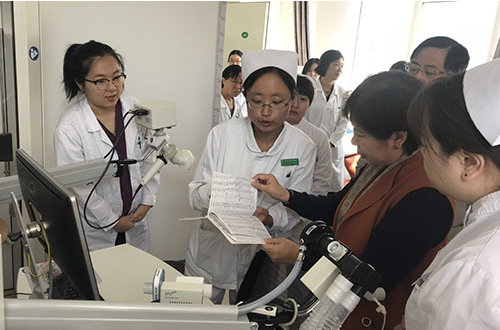 此次评审,专家组一行先后到呼吸内科病区、MICU病区、门诊综合诊疗室、专病门诊、肺功能室、支气管镜室、睡眠呼吸监测室、呼吸实验室、呼吸示教室进行了现场评定,严格考核工作指标数据,现场随机抽取医生和护士进行“三基三严”、PCCM知识与技能、慢病患者管理、健康教育等全方位考核。随后,到病房询问了患者对自身疾病的认识以及对目前用药的掌握情况。
