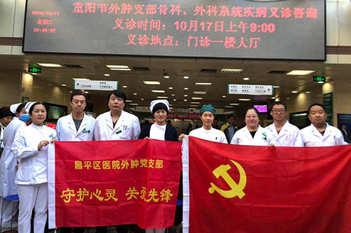在“九九重阳节”来临之际,昌平区医院党委紧紧围绕“新时代 新担当 新作为”宣传教育活动为契机,由外肿党支部牵头,继续深化“守护心灵 关爱先锋”支部党建品牌建设,在门诊一楼举办“庆重阳节 送健康”义诊活动。