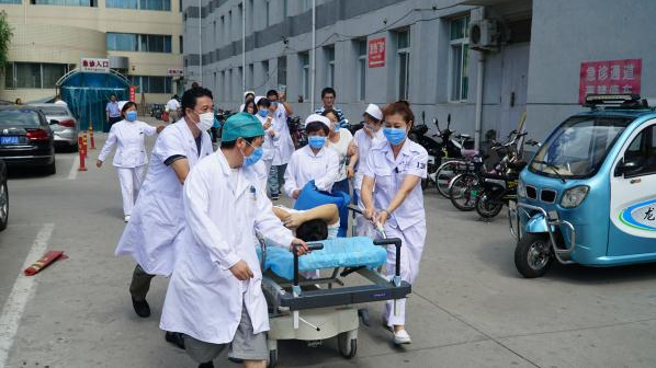 现场总指挥聂院长命令各科负责人下达人员疏散任务,门急诊科室负责人立即启动本科的逃生自救预案,组织人员携带必要的医疗救助器材,从安全出口有序的协助就诊病人进行逃生,直至到达安全地带(门诊楼西侧停车场)。到达集合地点后,门急诊负责人汇总各科室疏散及伤亡情况并向总指挥报告。保卫科人员负责协助消防人员继续进行灭火、人员搜救及火灾后的事故勘察现场看护等任务,事件结束后,汇总本次火灾事故详细原因及扑救任务的过程,向院领导报告。