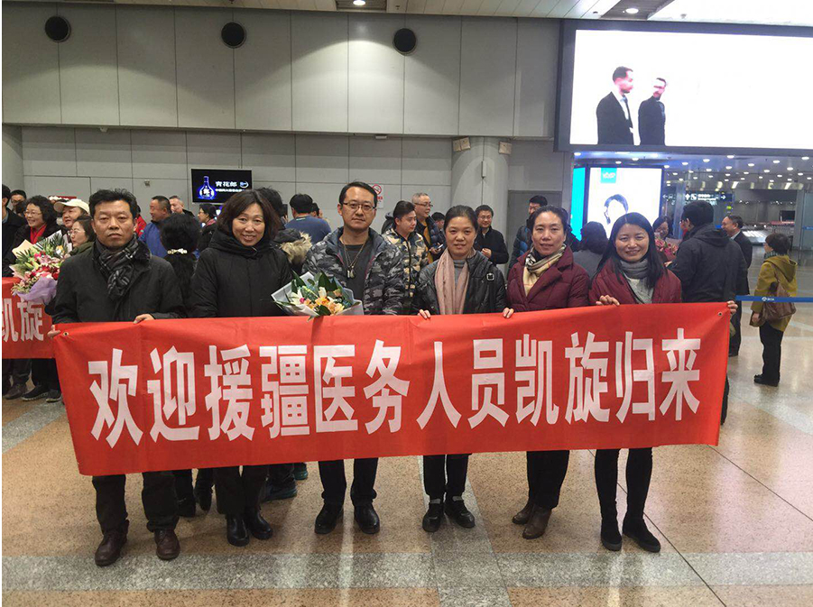 2018年1月15日晚, 我院放射科主治医生吕文澜圆满完成援疆任务,满载着辛勤付出而收获的荣誉和喜悦,乘机飞抵北京,区卫计委政工科科长温俊杰、院党委副书记毛新及相关领导到机场迎接凯旋归来。