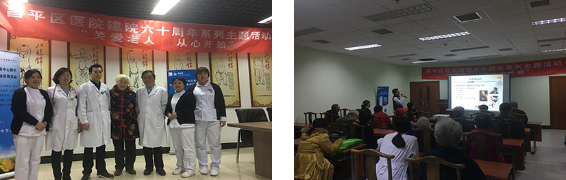为以实际行动践行“担当诠释忠诚”,落实昌平区医联体建设的整体工作部署。在昌平区医院60周年院庆来临之际,我院内儿党支部心内二病区医护人员在主任孙礼玲的带领下,于11月18日走进北七家社区宏福苑卫生服务站,就老年人冠心病发病率高,规范治疗率低,预防率低的现状,开展了“关爱老人,从心开始”的义诊宣传活动。