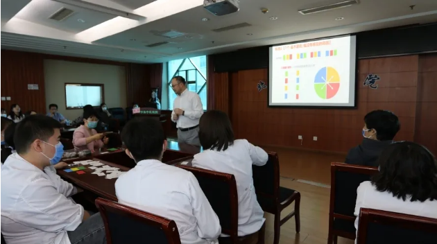 课程以差异化体验游戏为基础,结合医患沟通场景,真实的沟通视频为辅助,通过应用模型,使医务工作者快速掌握适应性沟通要诀。朱斌老师向大家介绍了“色眼识人”技巧,即如何判别沟通对象属于哪一类性格人群:热情型“红”、探索型“黄”、理性型“蓝”、稳妥型“绿”。随后,通过分组活动的形式充分展现不同人群的个性特点和沟通关注点,对于不同人群提出针对性沟通建议。