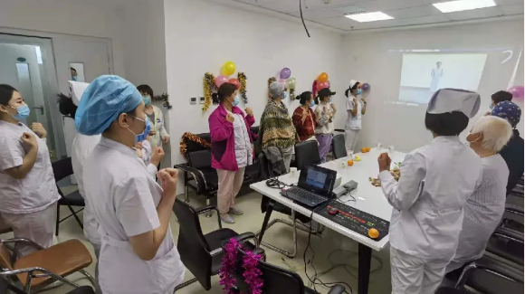 座谈会在一段小视频中温暖的拉开了序幕,看着屏幕上一张张熟悉的面孔、一幕幕动人的场景,过往仿佛就在昨天,大家坐在一起相互鼓励、相互交流,感受着生命的力量。随后,肿瘤科主任周爱军及科内医护人员针对几位病人提出的疑难问题一一耐心解答,化解大家心中疑惑,并为病友们查看肢体功能恢复情况。在护士的带领下,病友们共同学习了乳腺癌术后肢体功能锻炼操并现场练习,避免出现术后并发症。