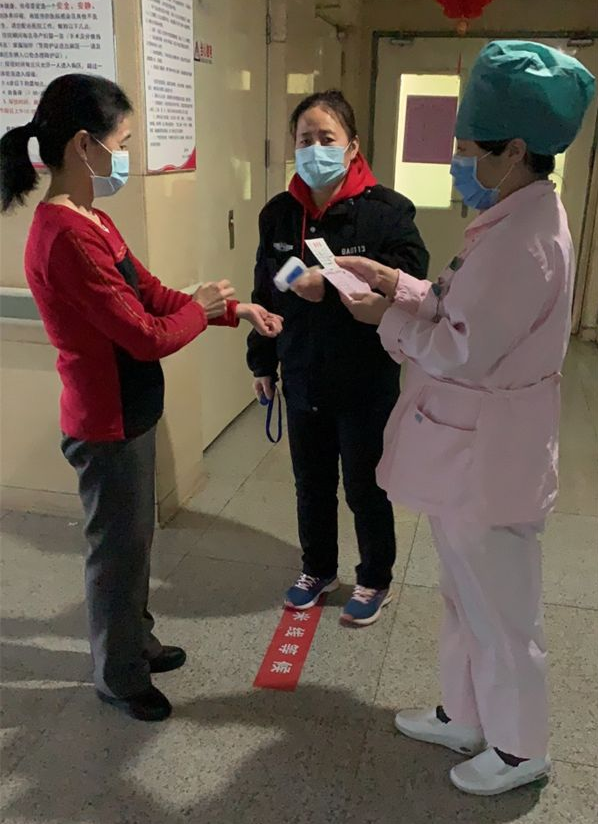 “您好,麻烦先测一下体温。”“体温正常,请出示您的陪护证。”新冠肺炎疫情发生后,昌平区医院及时加强住院患者的陪护探视管理。各科室实施“属地”管理,不等不靠,关口前移,安排专人24小时加强对陪护及探视人员的管理。建议视频探视,对陪护人员进行体温检测、健康史询问、入室登记,要求全程佩戴口罩、一患一护,发热人员禁止入内并带领至发热门诊排查;做好患者、陪护及探视的健康宣教及沟通;必须陪护者,为陪护人员发放由护理部统一制作的陪护证,严格查验证件。