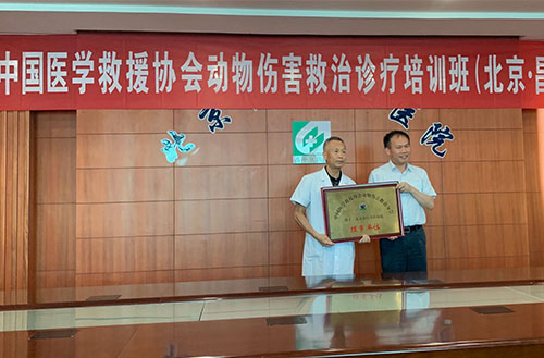 为贯彻健康中国战略,促进动物伤害诊疗事业的发展,由中国医学救援协会主办,北京市昌平区医院承办的2019年中国医学救援协会动物伤害救治诊疗培训班(北京昌平站)暨动物伤害救治分会理事单位授牌仪式,于7月2日在昌平区医院举行。昌平区医院被授予中国医学救援协会动物伤害救治分会理事单位。
