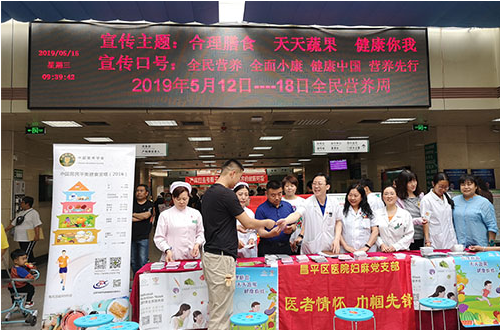 2019年5月12-18日期间是我国第五个“全民营养周”,今年营养周以宣传“吃动平衡行动”为主要内容。为提高公众的营养健康知识水平,提升健康生活理念,2019年5月15日上午,昌平区医院携手区疾控中心于医院门诊大厅组织开展了“2019年全民营养周义诊宣传活动”。
